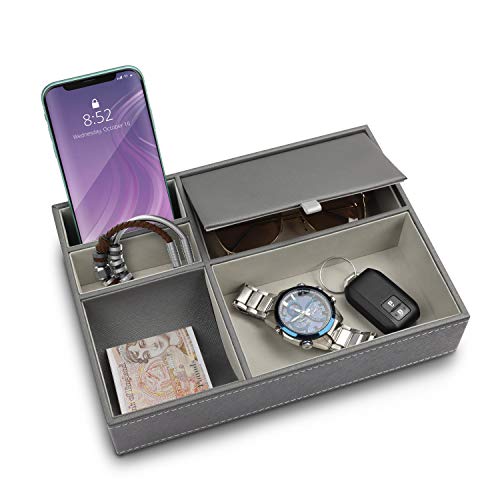 Similicuir Plateau Vide Poche Entrée Gris 5 Compartiments