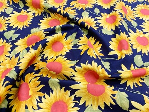 100% coton popeline – Fleurs de tournesols bleu marine – Tis...
