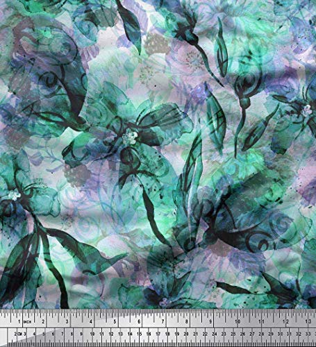 Soimoi Vert soie en tissu floral & texture tissus imprimes p...