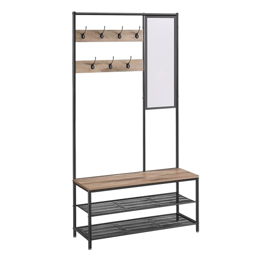 Vasagle Meuble d'Entrée avec Crochets, Miroir, Étagère Chaus...