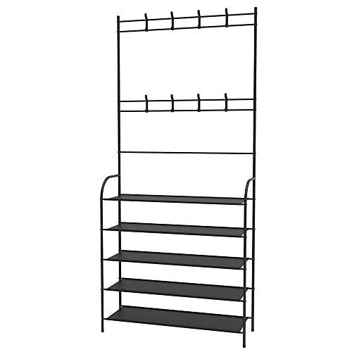 Porte-manteau crochets étagère chaussures 10 crochets 3 nive...
