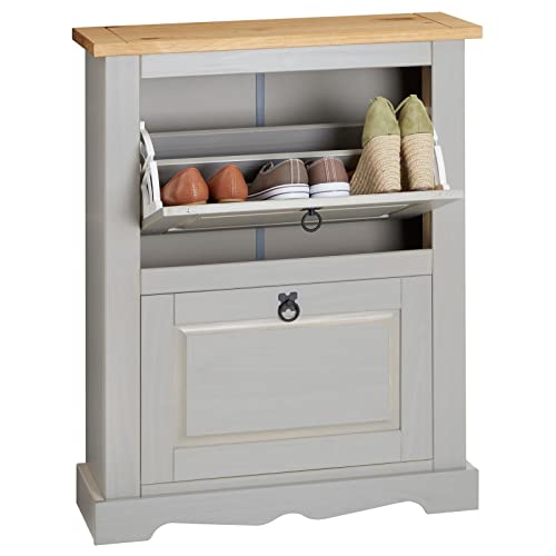 Rangement Chaussures Meuble Armoire 4 abattants Gris 100x19x...