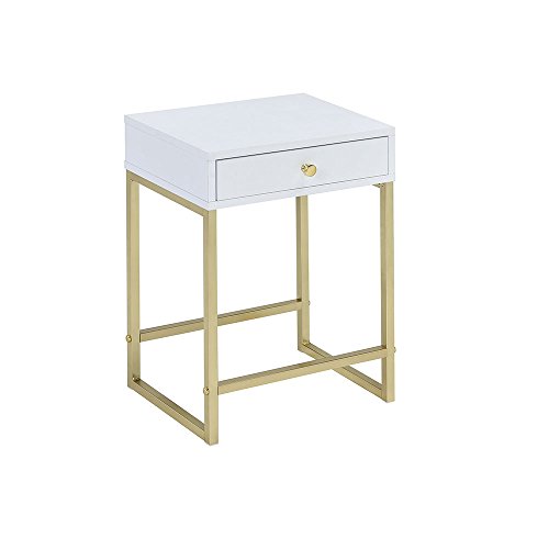 ACME Meubles 82298 Table d'appoint Blanc Laiton