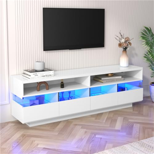 TV LED Meuble Bas avec 2 Compartiments et 4 Grandes Portes,...