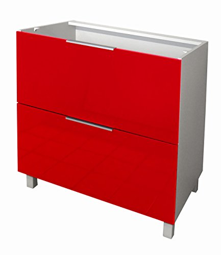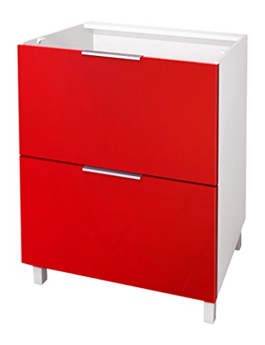 Berlioz Creations BAS Meuble de cuisine 2 Tiroirs, Rouge, 60...