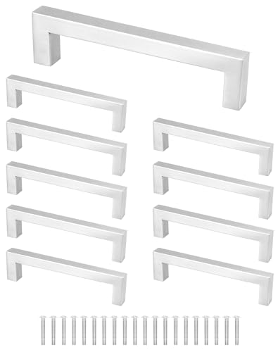 QWORK 10 Pièces Poignées de Meuble Cuisine Argent, Acier Ino...