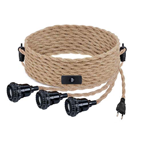 Suspension textile 3×E27, lampe rétro 9m, interrupteur