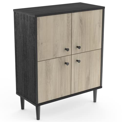 Buffet Industriel Noir Bois 4 Portes - Meuble de Rangement