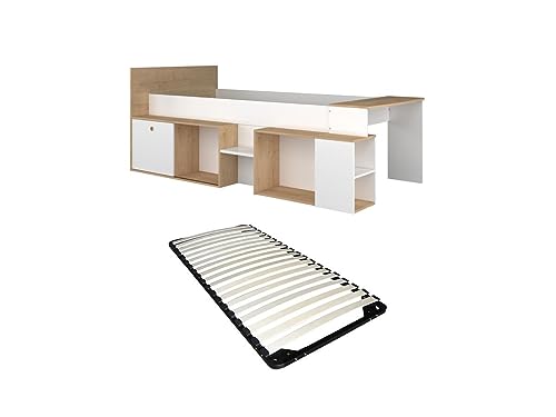 Lit combiné 90 x 200 cm avec bureau et rangements + Sommier...