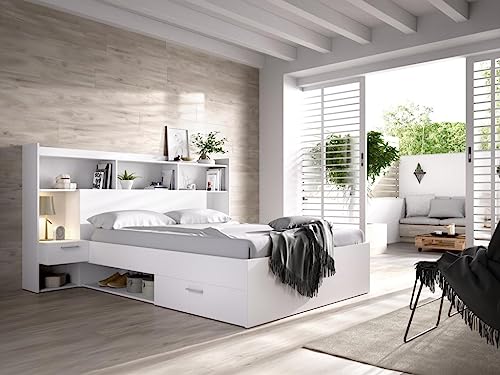 Lit avec rangements et chevets intégrés 140 x 190 cm - Struc...