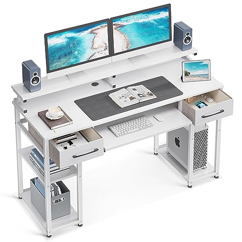 Table d'ordinateur bureau avec tiroirs, bureau avec étagères...