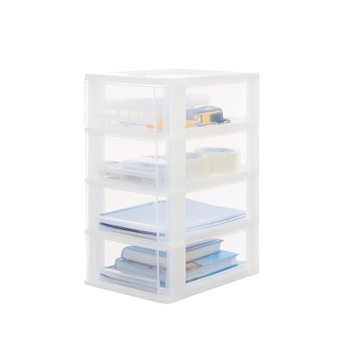 Tour Rangement Plastique, Blanc Givré, A4, Facile à Utiliser