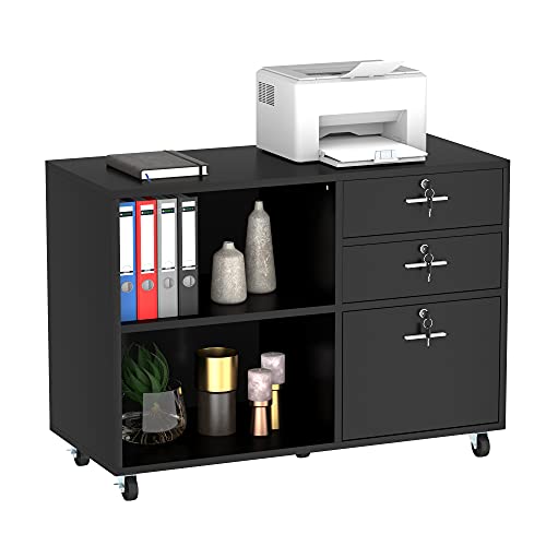 Classeur bois latéral mobile 3 tiroirs, classeur imprimante...