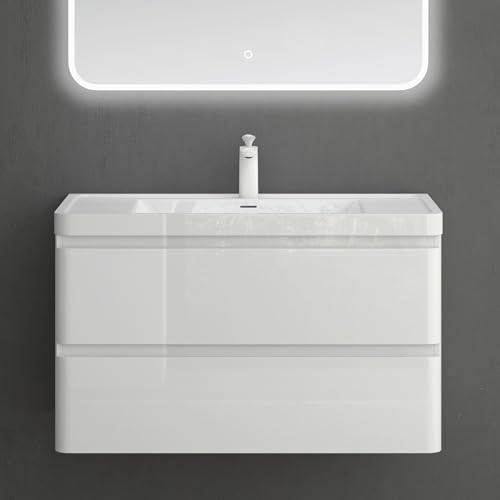 Mai Meuble de Salle de Bain Suspendu 90x48x55cm, 2 tiroirs,...