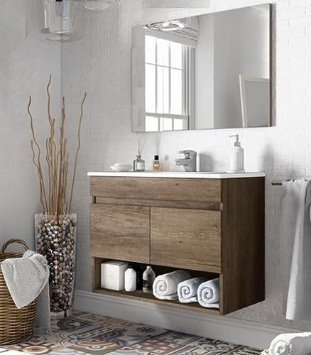 Meuble de Salle de Bain de 80 cm Couleur chêne veiné avec la...