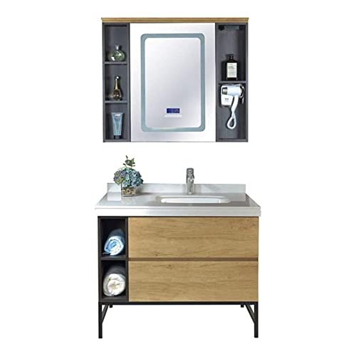 Luxe Meuble de salle de bain avec lavabo 90cm, miroir 50cm