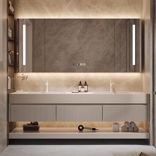 Meuble salle de bain intelligent avec lavabo, miroir LED, 6...
