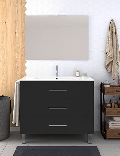 Meuble de salle de bain gris-noir mat avec 2 tiroirs en stru...