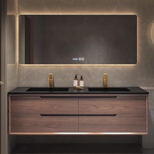 Mat Meuble de Salle de Bain Gris-Noir Suspendu avec Lavabo e...