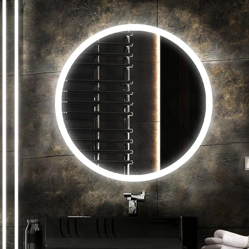 Miroir de salle de bain rond éclairé en blanc neutre POWELED...