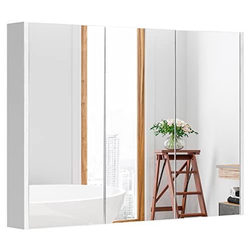 GOPLUS Murale Salle de Bain avec 3 Portes, 3 Étagères et Hau...