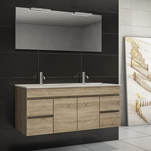 FlaviCasa Salle de Bain Suspendu Double Vasque Céramique 120...