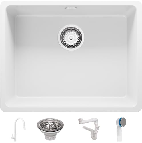 Évier sous plan Granit Blanc 56x44 cm Lavabo Cuisine 1 Bac +...