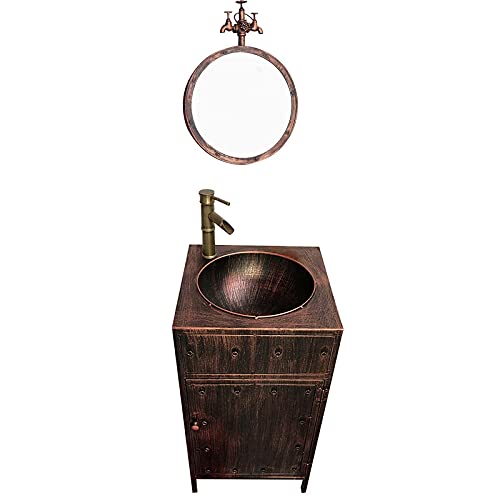 Meuble sous-vasque industriel cuivre rouge sans miroir.
