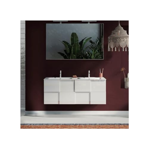 Meuble sous-vasque 2 tiroirs 120 cm blanc laqué brillant mot...