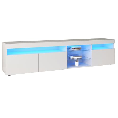 Azkoeesy Meuble TV bas brillant avec éclairage LED 180 cm -...