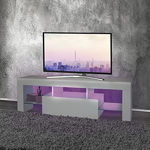 ML Design Meuble TV LED Éclairage - 130x49x45cm Bois Blanc a...