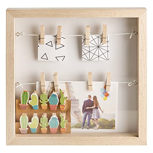 Gadgy ® Cadre 3D Photo avec 18 Clips | Pele Mele Bois de 25x...