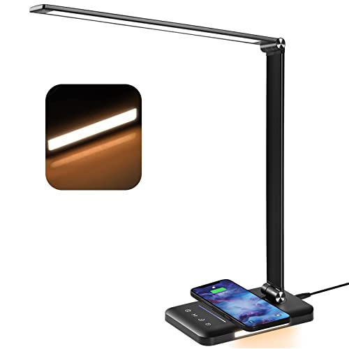 Lampe Bureau LED Dimmable 10W, Charge Sans Fil, 1200Lux