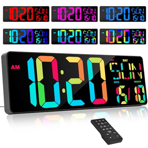 XREXS Horloge Numérique Murale à Couleurs Changeantes RVB av...