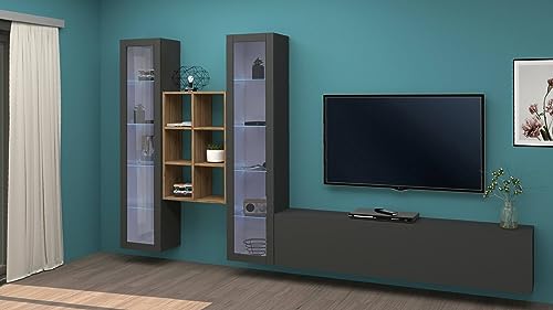Mur Dmora Eros, Salle TV 3 portes, Meuble multifonction Anth...