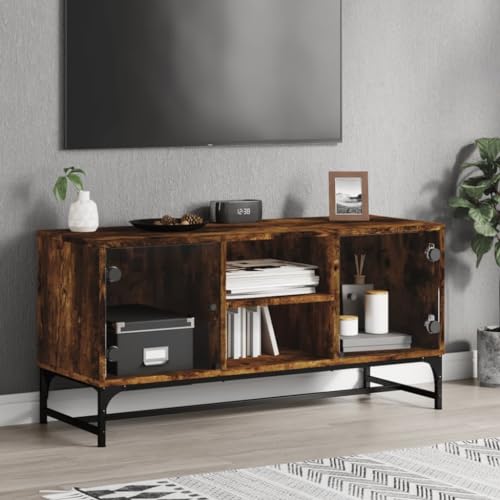 Meuble TV avec portes en verre chêne fumé 102 x 37 x 50 cm,...