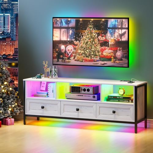 Lvifur Meuble TV LED avec Borne de Recharge, Table TV pour T...