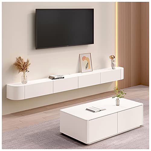 Console multimédia Murale, Meuble TV Flottant Blanc avec arm...