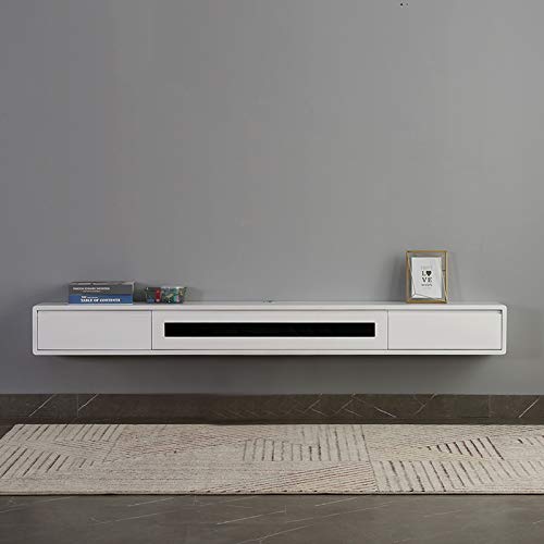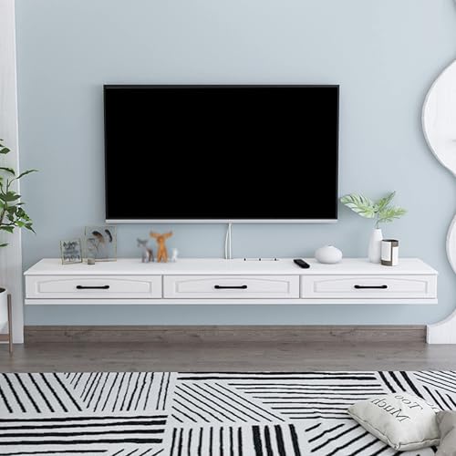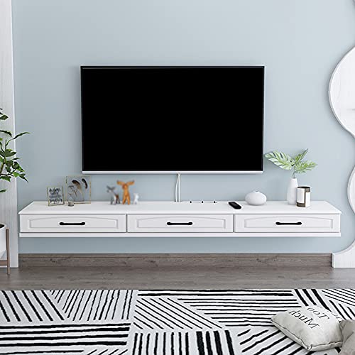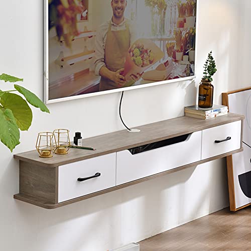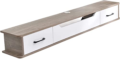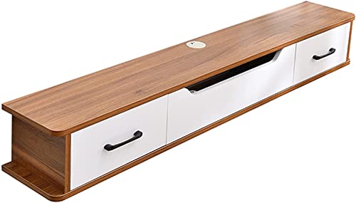 Flottant Meuble TV, Mural en Bois, Tiroirs, Support Décodeur