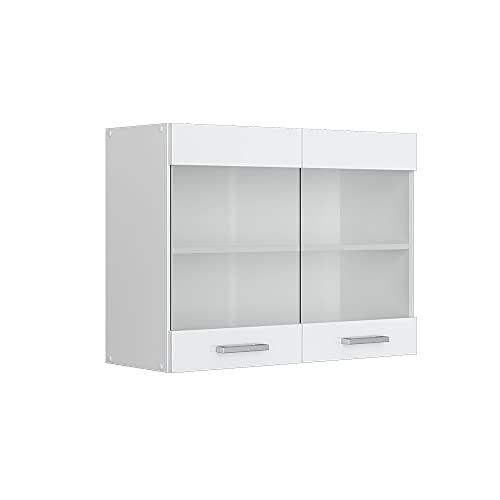 Vicco Meuble de Cuisine Haut vitré R-Line Béton Blanc 80cm