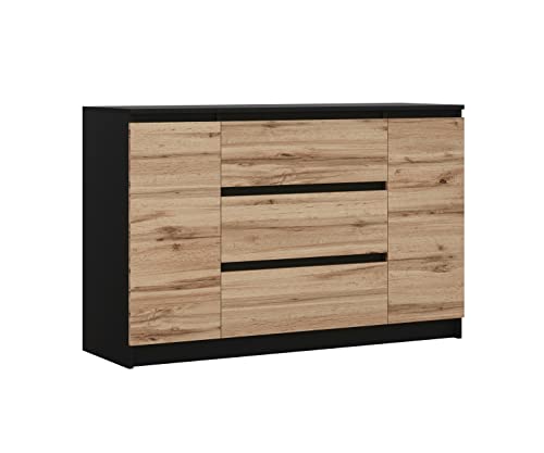 Living.com Commode Noir & Chêne 3 portes, 2 tiroirs, dimensi...