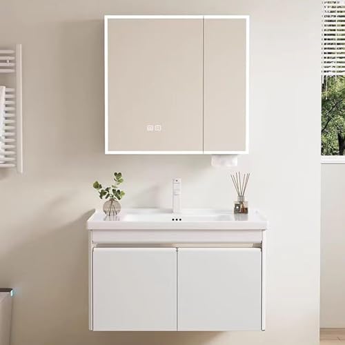 Ensemble salle de bain flottant blanc, Meuble miroir intelli...