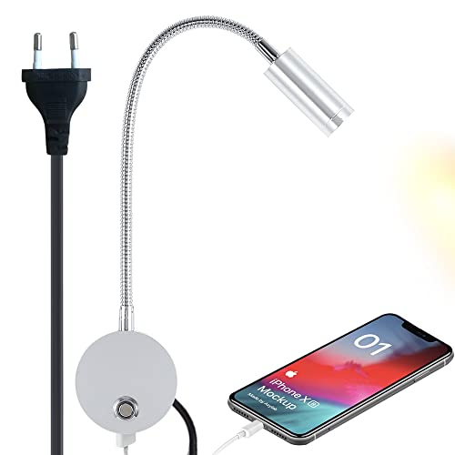 Pulinte LED murale à intensité variable, port USB, chevet fl...