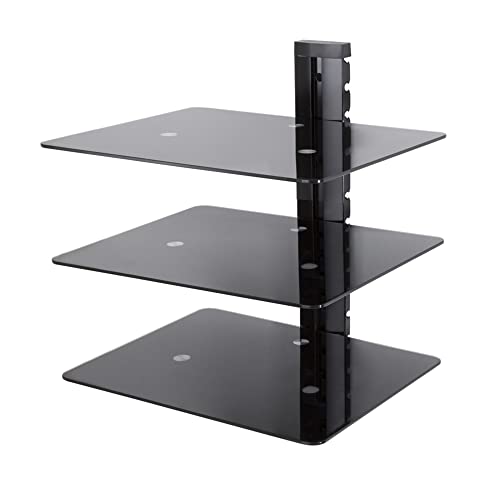 Étagère DVD/Blu-Ray en verre noir avec support mural, 3x.