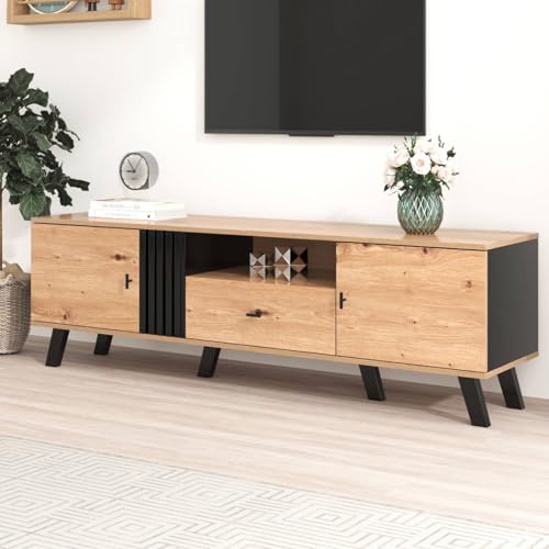 Sweiko Meuble TV, buffet, avec design naturel et noir, meubl...