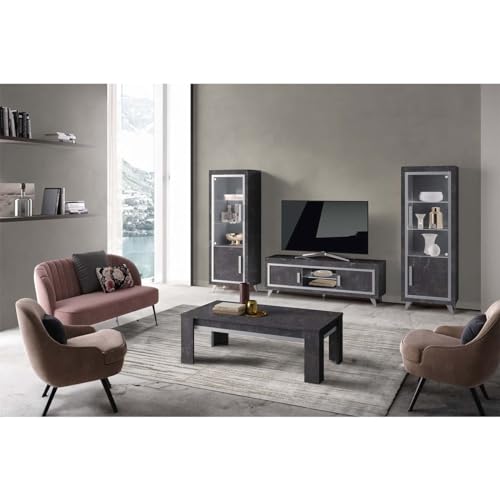 GUEDA Salon Complet Effet Marbre Anthracite TV et Vitrines L...