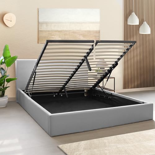 OnNuvo Lit de rangement double 160 x 200 cm rembourré London...