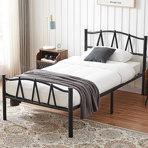 Cadre Lit Simple avec tête et pied, support lattes métal rob...