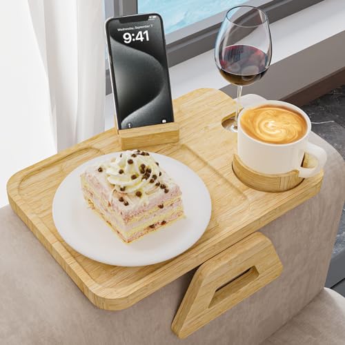 Swaitee Table d''accoudoir de canapé en Bambou, Plateau magn...