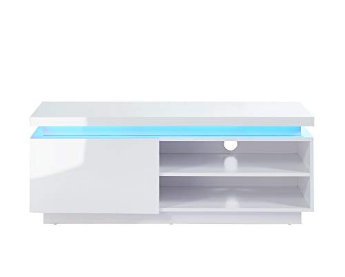 Stella Trading GOAL Banc TV en blanc brillant avec éclairage...